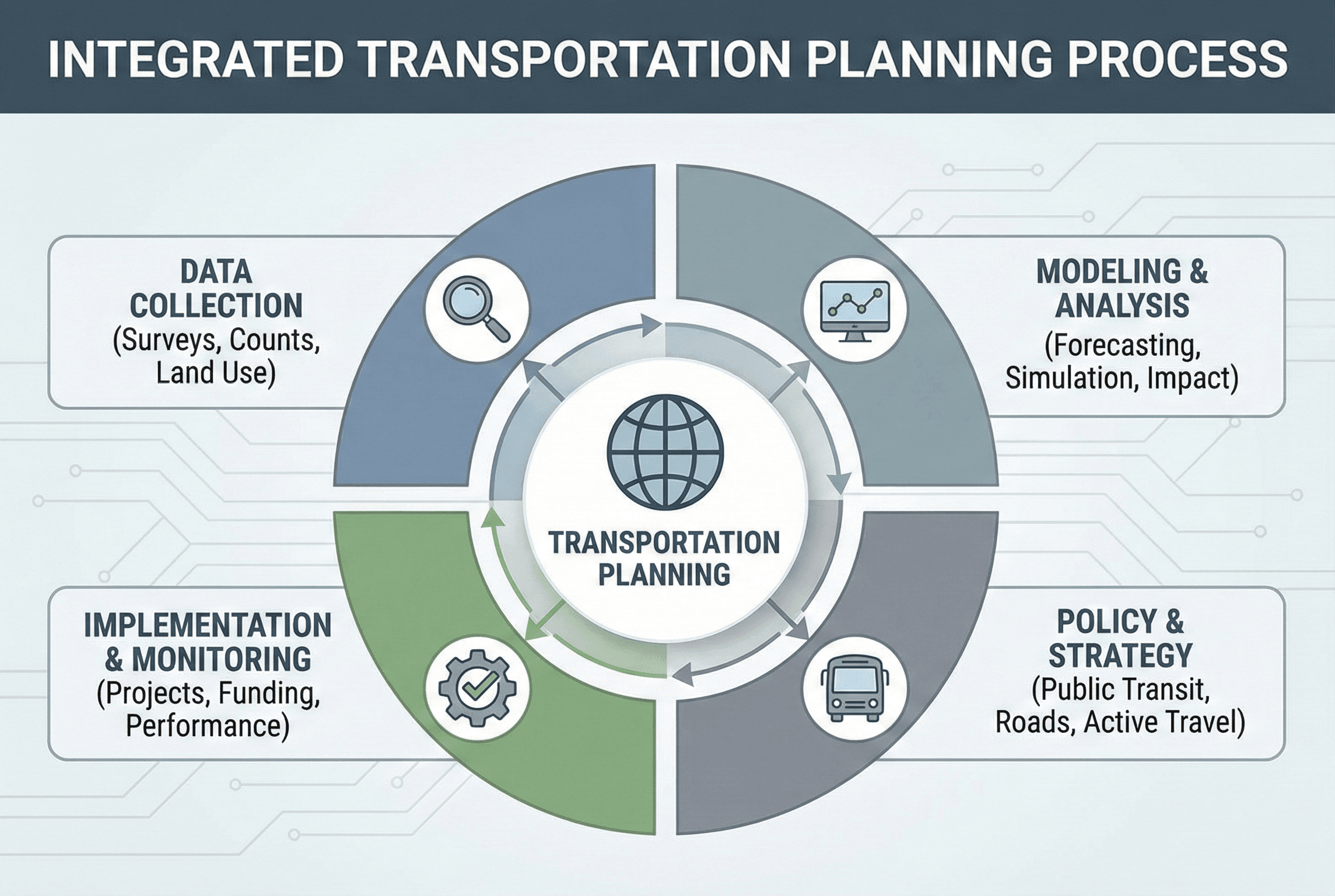 • Context: Transportation planning sits at the interface of civil engineering, urban planning, and policy, translating community goals into technically defensible projects and investment strategies.